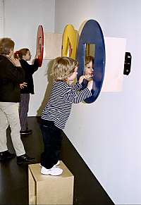 Der Ort Wer kennt sie nicht, die Pflichtbesuche in Museen? Damals musste man von der Schule aus in weißgekalkten Räumen an Glasvitrinen mit staubigen Exponaten vorbeiziehen und sich von der Lehrerin oder dem Museumsführer langweilige Vorträge zu den Ausstellungsstücken anhören. Eine Tortur! Und für viele Erwachsene ein Grund, den Museen endgültig den Rücken zu zu kehren. Doch in den letzten Jahren hat sich viel getan. Museum bedeudet heute: Information, bunt, schillernd, interaktiv. Fast kein Museum mehr, dass nicht spezielle, aufregende Führungen anbietet, zum Beispiel das Bauen eines Indianertipis... usw. Doch auch ganz normale Besuche eines Museums sind inzwischen spannende und interaktive Ereignisse geworden, denn überall kann man Experimente durchführen, auf Knöpfe drücken, sich durchschaukeln lassen... usw. je nach Art und Ausstellung des Museums. Hier vorstellen möchte ich Ihnen ein Museum, von dem man erst einmal gar nicht vermuten mag, dass es für Kinder interessant sein könnte: das Mathematikum in Giessen /Hessen. Eröffnet wurde das Mathematikum im November 2002 und hatte von Anfang an, mit einem riesigen Besucherstrom zu kämpfen. Führungen für Schulklassen waren und sind auf Monate hinaus ausgebucht. Trotzdem hat man man als Einzelperson oder Familie durchaus Platz, um das Museum zu entdecken. Hier soll Mathematik einem möglichst breit gefächerten Publikum verständlich gemacht werden. Dies geschieht durch viele selbst nachvollziehbare Experimente, die in Bezügen zum Alltag und zu Anwendungen des normalen Lebens stehen. Spezielles für Kinder Das Mathematikum ist für Besucher (fast) jeden Alters geeignet. Ab dem dritten Schuljahr ist ein Besuch problemlos. Aber auch jüngere Kinder haben an den Experinenten des Mathematikums viel Freude. Dazu sollten jüngere Kinder aber mit ihren Familien oder in Begleitung Erwachsener kommen. Wir waren dort mit einem dreijährigen Jungen, der viel Spaß hatte, wie man an den Fotos dieser Seite sehen kann. Für den Aufenhalt sollte man mindestens eineinhalb Stunden einplanen. Alle Experimente sind "unkaputtbar" und deshalb auch für die Kleinsten geeignet. Die einzelnen Module sind übergroß und gut handhabbar. Alles in allem, ein Spaß für Eltern, die sich ihre Neugier bewahrt haben und natürlich für Kinder. Und sollten Sie einmal in Erklärungsnot geraten, so können Sie sich bei den Betreuern, die Sie in jedem Raum finden, Hilfe und Ratschläge holen. ![]() Dieser Artikel wurde vom Webmaster