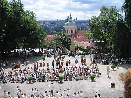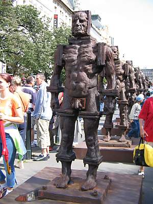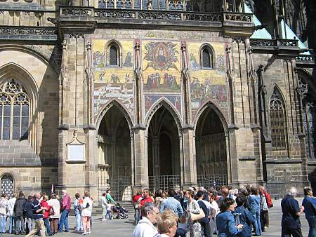 Eine Aufzählung der sehenswertesten Gebäude und Ausstellungen möcte ich an dieser Stelle nicht aufstellen, denn je nach Interessenslage sind fast alle Bauwerke sehensert. Auch wer sich nur oberflächlich für Baukunst interessiert, sollte sich einige Stunden Zeit für den Hradschin nehmen. Und vor allen ingen feste Schuhe anzeihen, denn das alte Pflaster ist für Pumps völlig ungeeignet. Täglich um 12 Uhr findet auf den Ehrenhof genannten Burghof eine Wachablösung statt, die ein wenig an die Zeremonien in England erinnert. Sie beruht allerdings nicht auf jahrhundertalte Traditionen, sonder ist erst vor einige Jahren eingeführt worden. Neben dem allgemeinen Ambiente der Gassen und Bauwerke in der Burg, hat mich der im 10. Jahrhundert begonnene und erst 1929 beendete Veitsdom am meisten beeindruckt, auch wenn es aufgrund der vielen Touristen sehr schwer war, die schöne Stimmung wahrnehmen zu können.